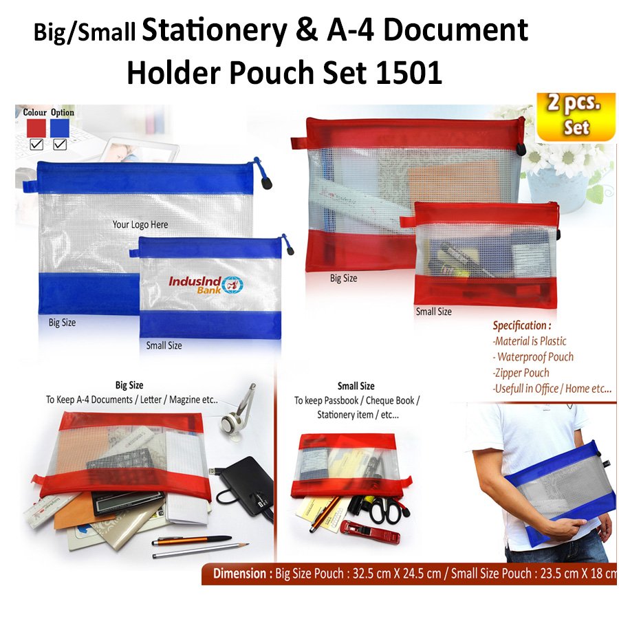 You get 2 Pouches 1 of Big Size and 1 of Small Size to keep your files, Folders A4 size Documents, Stationery, Etc.
