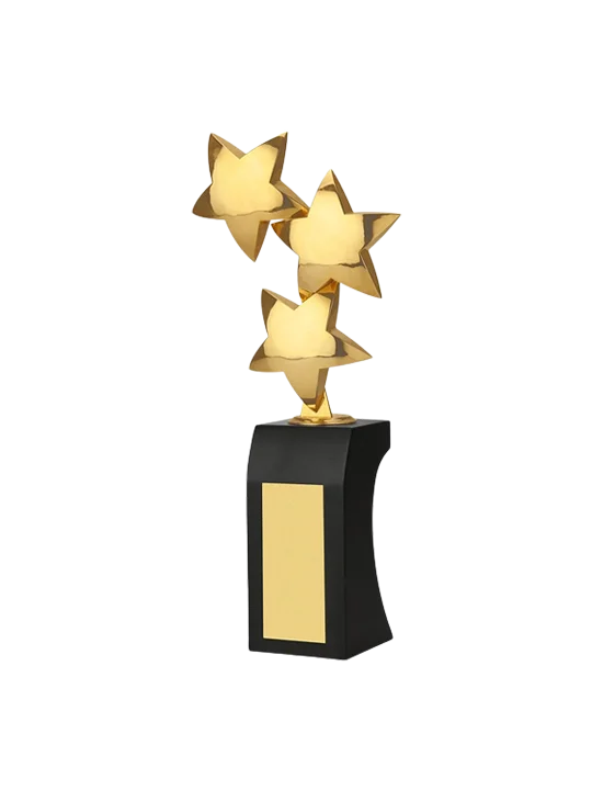 I am not done with 1 star, I want 3! Medium rectangular shaped wooden and gold metal finish space for brand pick and logo design is given below. The 3 Gold star nuts together one after another is marvelous in the corporate world.