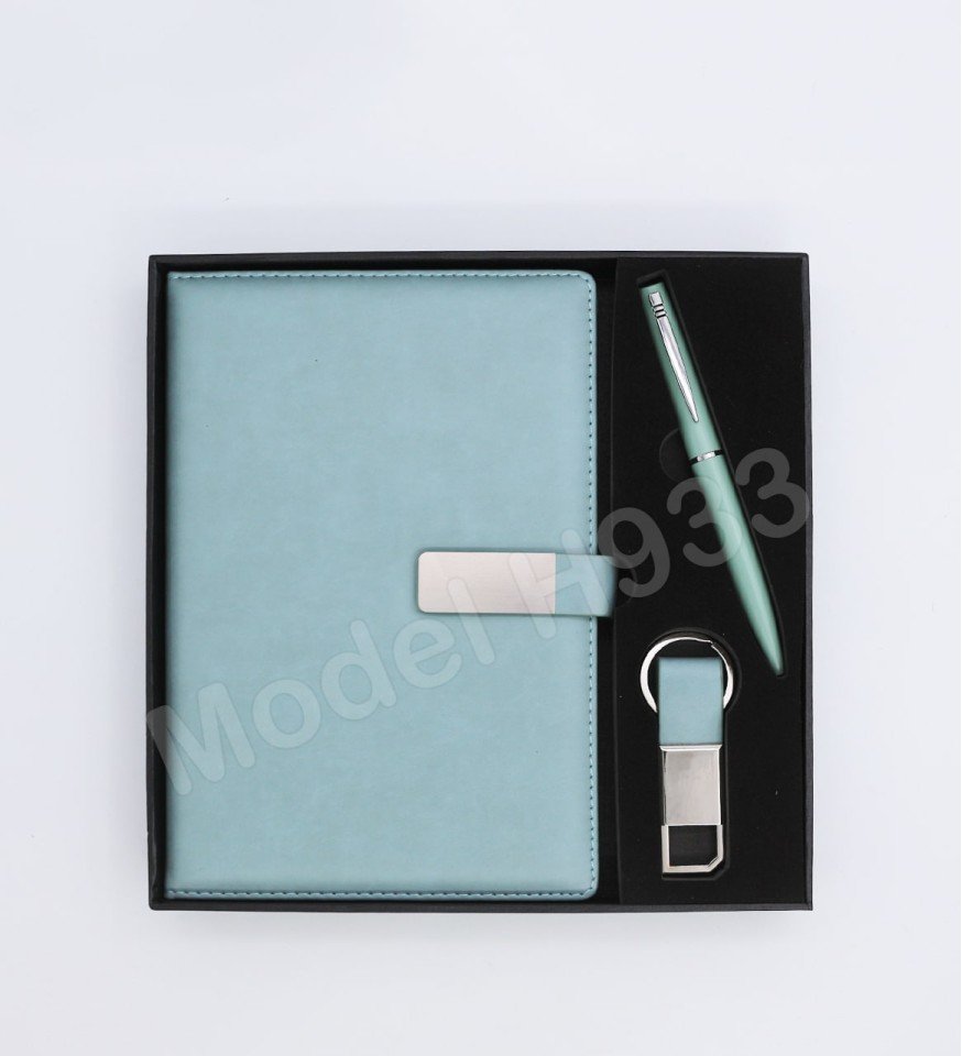 This is 3 in 1 Gift Set comes with a PU Leather Diary, The Diary has magnetic lock belt. A Metal Ball Pen and a Metal Keychain. It comes in Brown, Black, Blue, Grey and a Light Blue Colour.