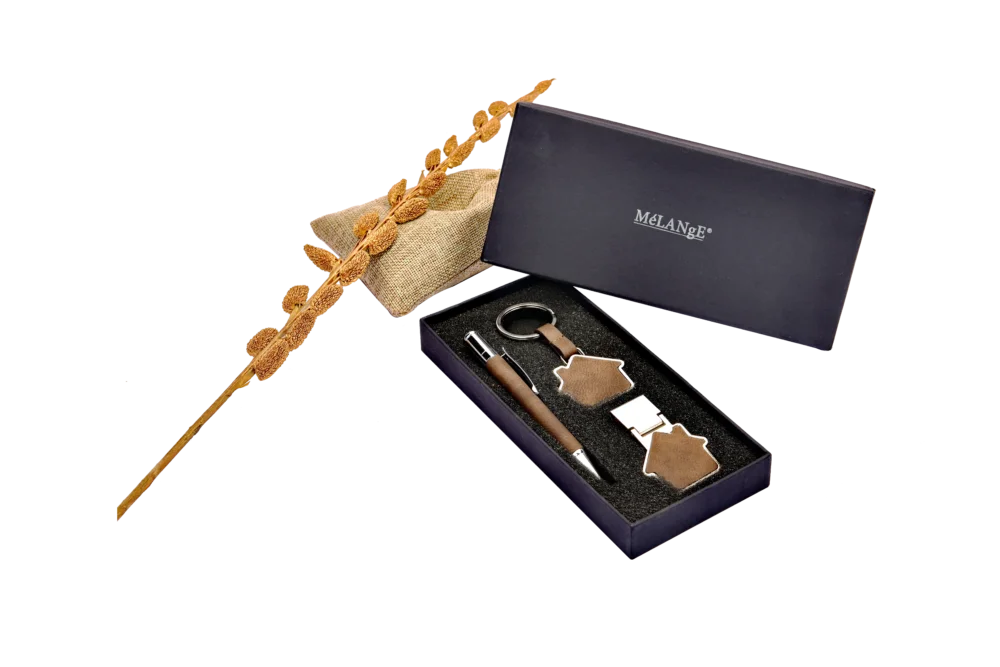 This 3-in-1 Office Accessory Set is sheer class! Excellent combination of silver and wood, this set consists of a sturdy pen, a pretty home shaped key-chain and a money/paper clip. Gift it to the office colleagues or even your boss and they will like the new additions to their table accessories. Bring a touch of classy design and elegance to any space with this stylish office table decor and it is functional too. Gift this office accessory set that has a touch of shiny silver. It can be gifted in any corporates or these are the best office desk accessories.