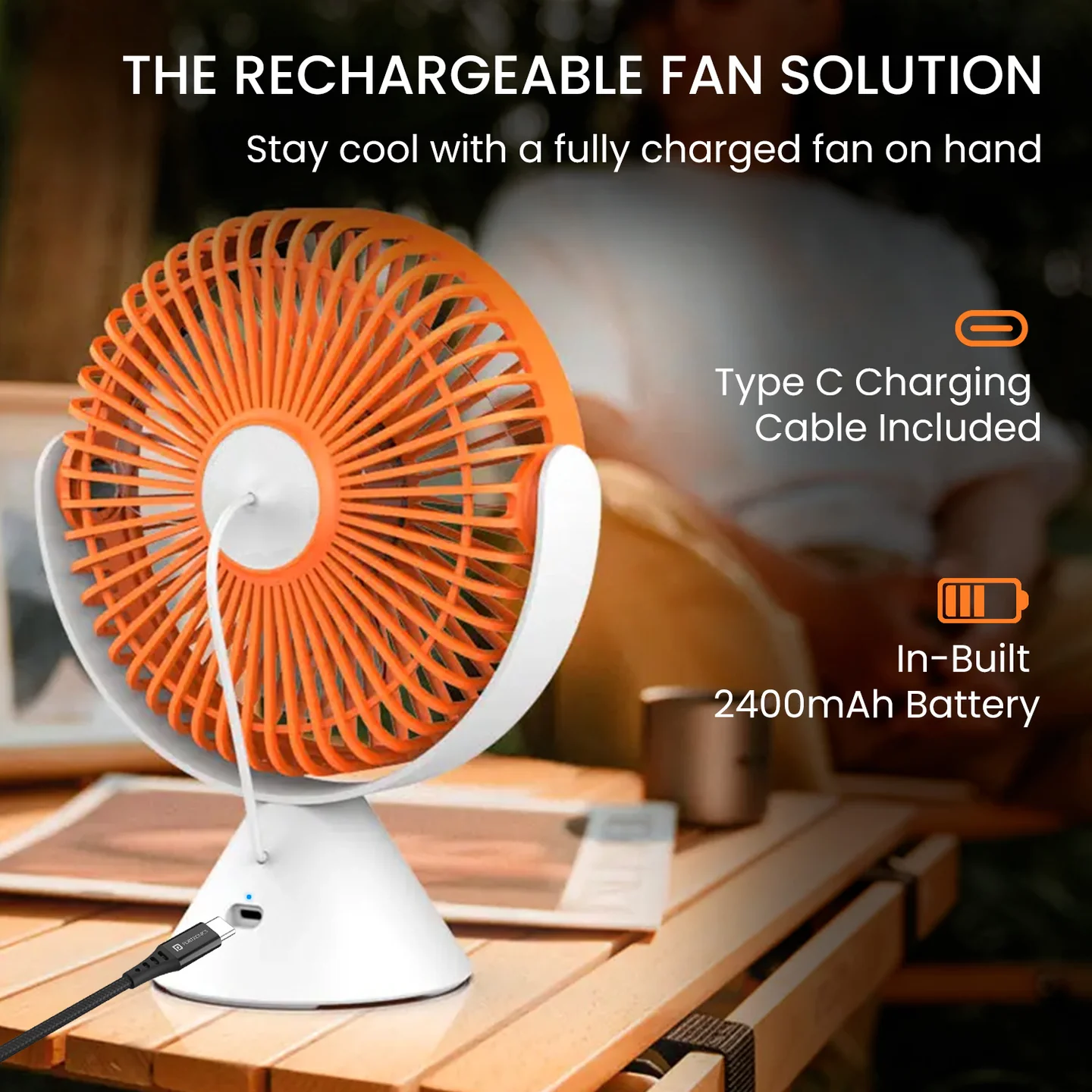 2400mAh Rechargeable Battery: With 2400mAh rechargeable battery, enjoy the cool breeze for a long time. Use the included Type C cable for convenient charging. Charge for 2 hours before first use.