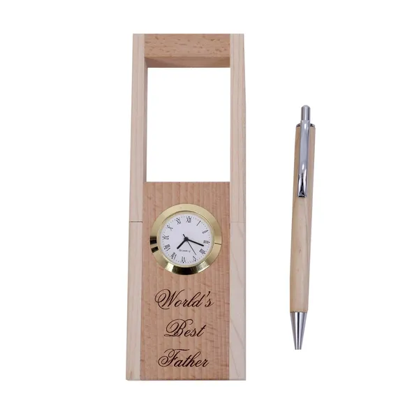 This Beige Wooden Pen Stand can be Personalised with any Name and it comes with an Analogue Clock, Its compact size is space saving.