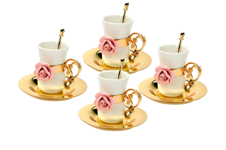 - Bestow your loved ones with this classy ceramic flower gold teacup set.