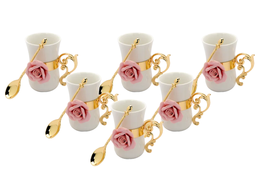 Ceramic Flower Unique Coffee Mug, Set of 6