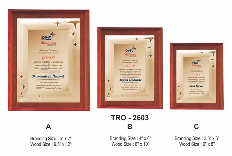 Corporate Golden Metal Plate Plaque / Memento TRO – 2603 A B C