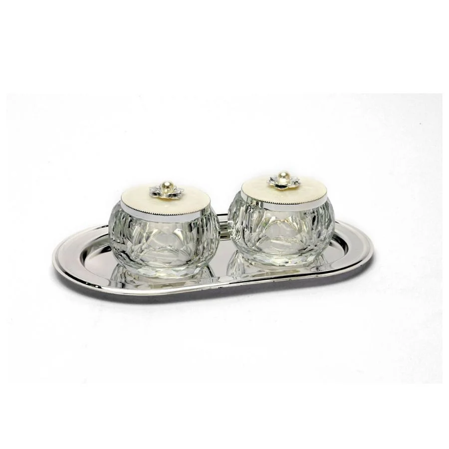Crystal Bowls With Oval Silver Tray (Set of 2) Size-Big