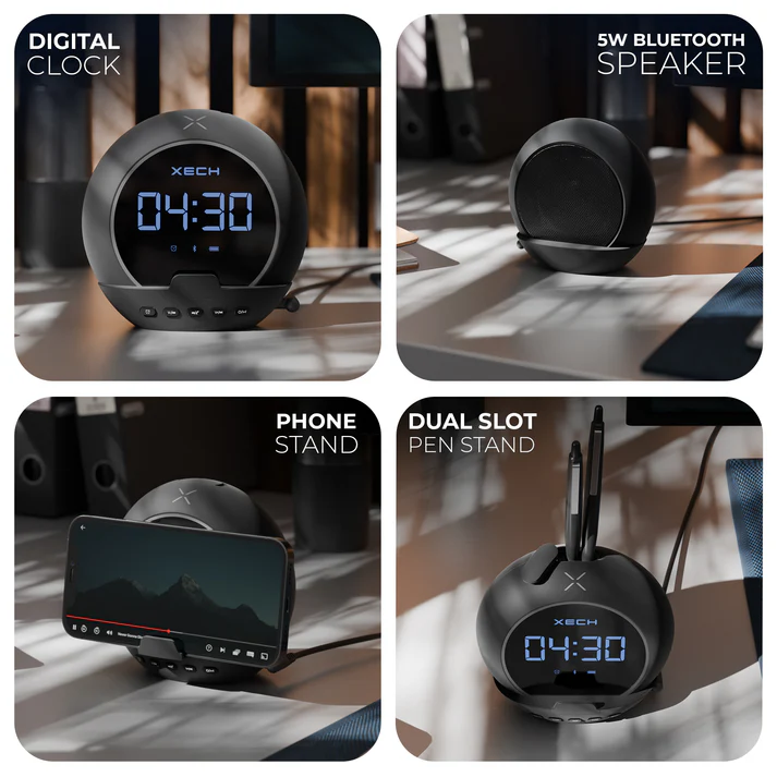 Introducing the Ellipse, a fusion of sound, time, and functionality for the multi-tasking maestros. This sleek and compact wireless marvel combines a 5W speaker, digital clock, and alarm. Immerse yourself in high-quality audio, stay organized, and wake up on time. With wireless connectivity, TWS mode, USB C charging, and a host of features, the Ellipse speaker delivers minimalist elegance while enhancing productivity and providing a seamless audio experience. It comes in Black as well as White Colour.