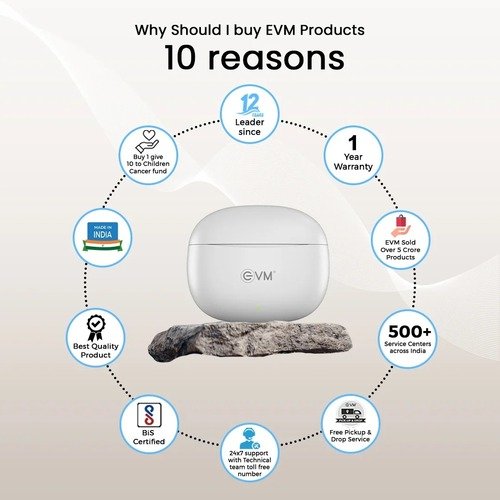 Experience the perfect blend of enduring aesthetics and durability with the EVM EnZest True Wireless Earbuds. These earbuds boast a sleek design that pairs seamlessly with their robust construction, ensuring long-lasting performance. Each earbud is equipped with a 40mAh battery, while the accompanying charging case features a 500mAh battery capacity. Charging is a breeze, taking only about 2 hours for a full charge. Enjoy wireless freedom with a Bluetooth range of 10 meters, complemented by dedicated microphones for clear and crisp communication. The audio experience is elevated through 12mm titanium speaker drivers, delivering rich and immersive sound. With a remarkable playing time of up to 8 hours, the EVM Enzest True Wireless Earbuds redefine your auditory experience.
