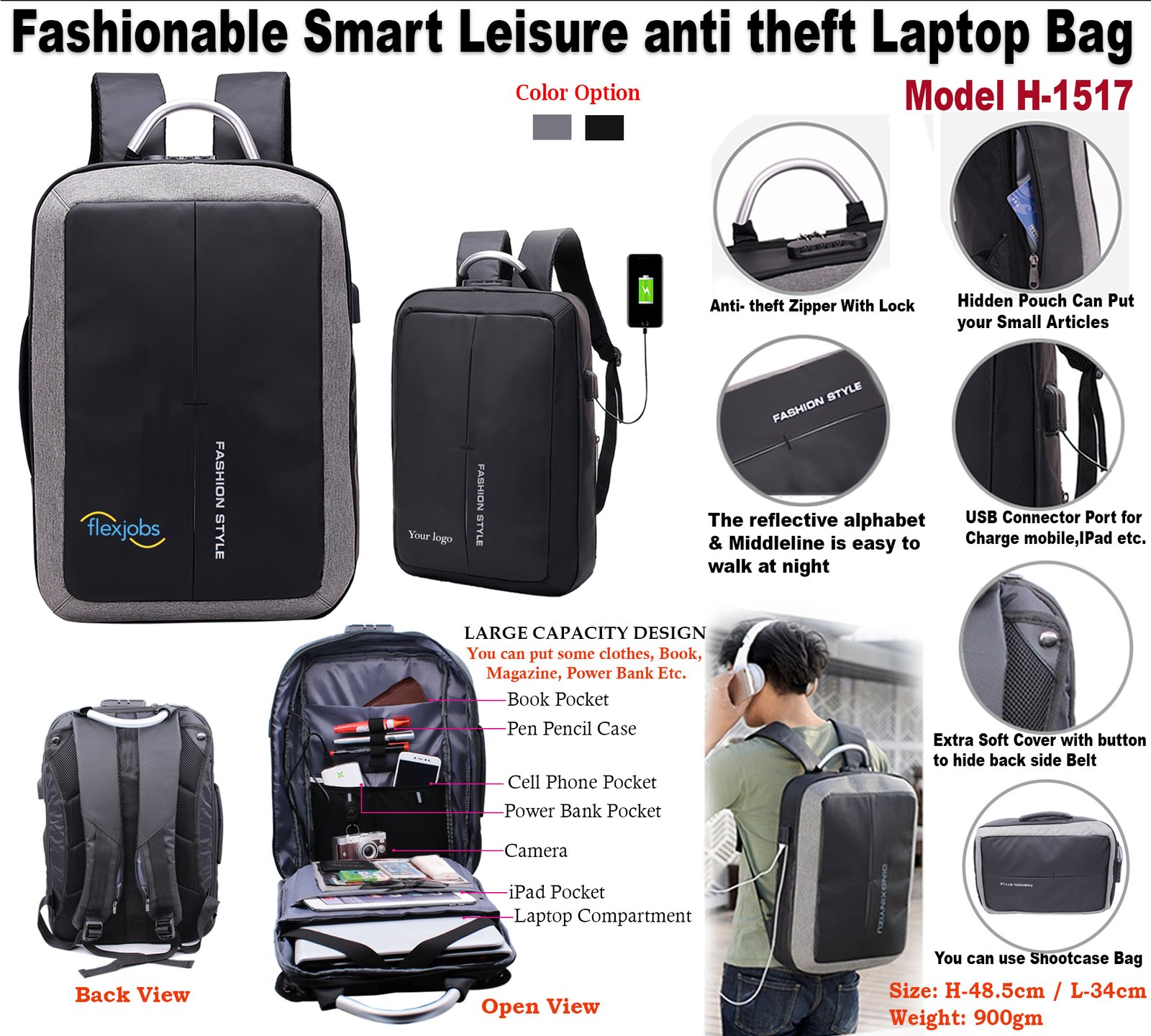 This Multifunction Anti theft Laptop Backpack comes with :-