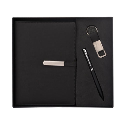 • Elegance Trio: Elevate your essentials with a stylish pen, elegant diary, and chic keychain.