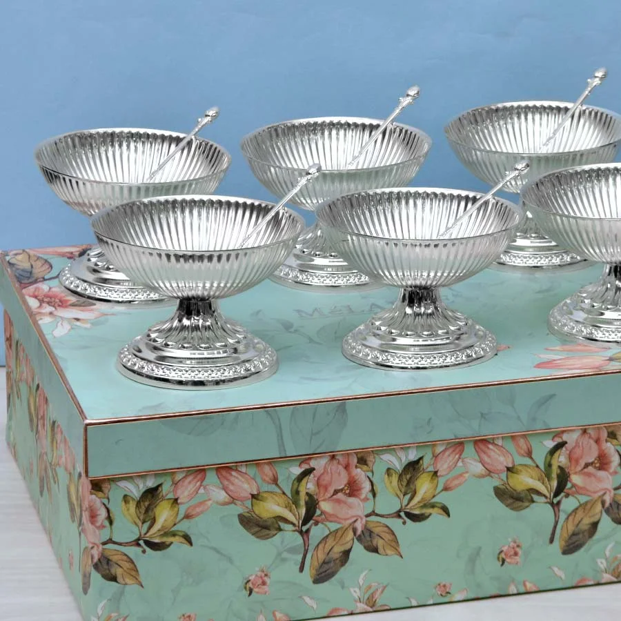 - This beautiful Fluted Design Ice Cream Silver Plated Bowl Set of 6 features a fluted surface on the bowl and stands on the base giving it a royal appeal.