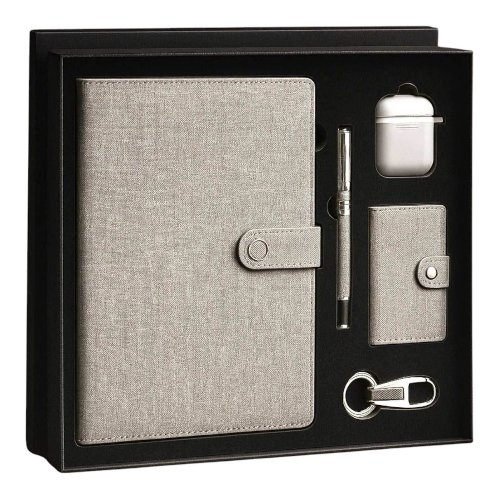 GCSR 335 5 in 1 Gift Set comes with a Diary, Pen, Keychain, Cardholder & Ear Pods.