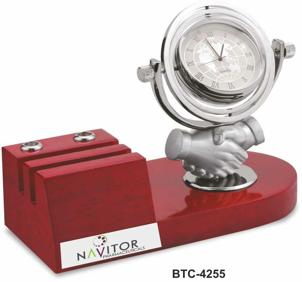 Hand Shake With Rotating Clock Desk Organizer BTC – 4255