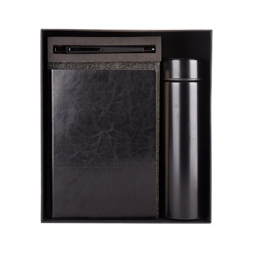 Small gifts can make a big difference. So, we are adding amazing Gift Sets to our broad Gifting Collection that can be the perfect corporate gift for all your employees, clients, and prospects. This Unique 3 in 1 Black Gift set contains a Temperature Bottle, Plastic pen and Soft bound diary. Ideal for Corporate gifting.