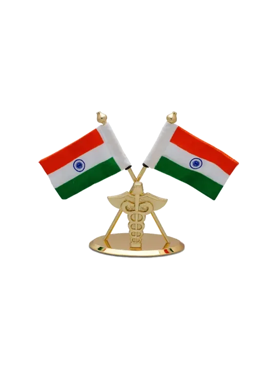 Show your respect, love and dignity for India by placing this Indian Flag for the office table or car dashboard with a Dr. logo. This cross flags with Dr. logo desk utility give your desk remarkable look. The flags are made out of Khadi.