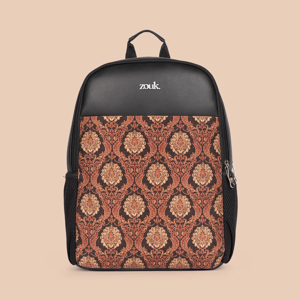 This is a Proudly Indian and 100% PETA approved Statement Backpack. This Multi-Compartment Backpack is designed to cater to your everyday needs. With its thoughtful design and durable construction, this backpack is perfect for students, professionals, and adventurers Featuring two main zipper compartments and a front zipper pocket, this backpack offers ample storage space to keep your belongings organized and easily accessible.