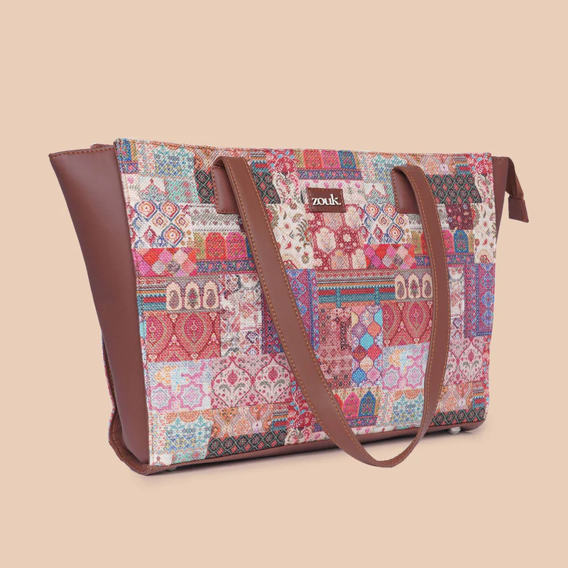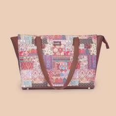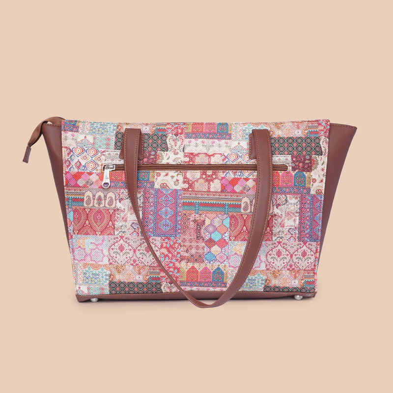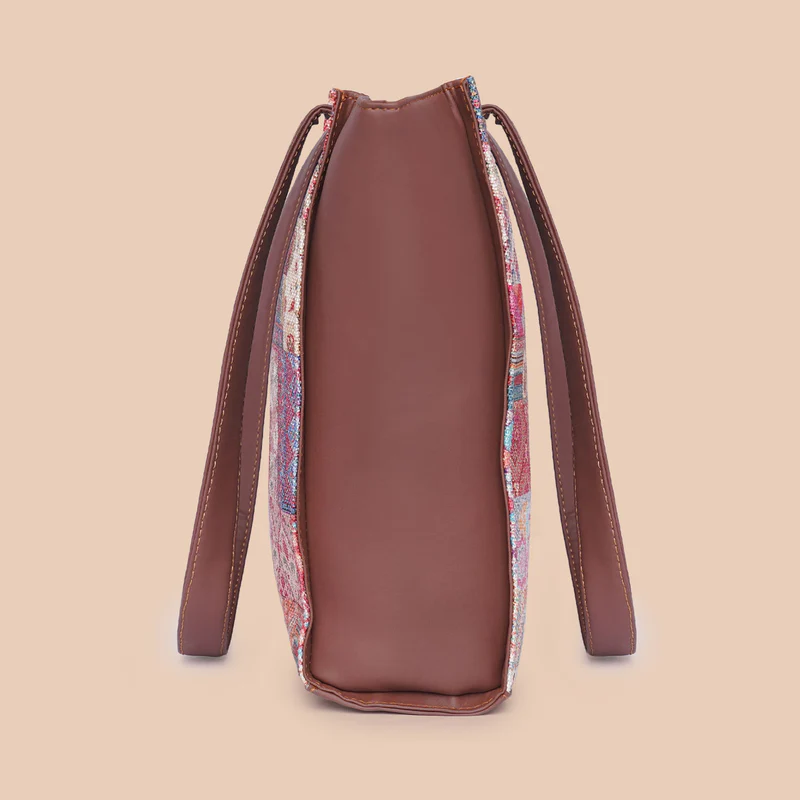 Material Used – Vegan Leather, Handicraft Fabric, Water-resistant inner lining, matte metal fittings.