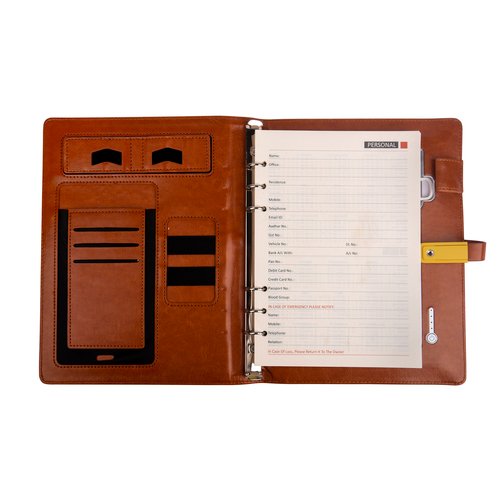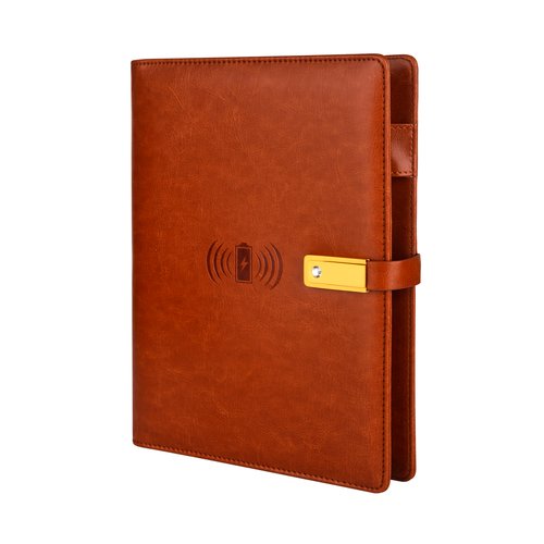 - A-5 Size Power Bank Notebook Folder with Tan Soft Pu Cover and 8000 MAH Capacity