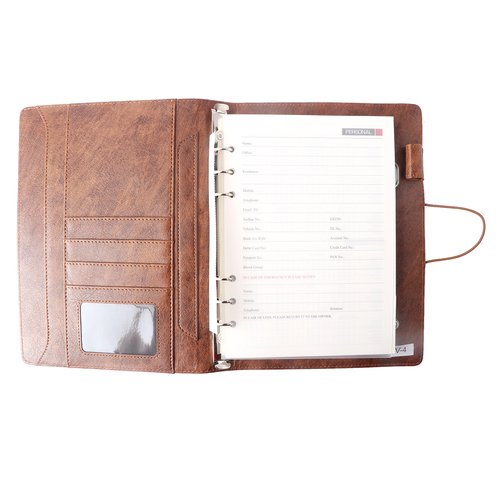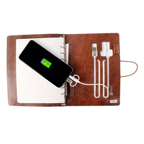 - A-5 Size Power Bank Notebook Folder with Brown Soft Pu Cover and 8000 MAH Capacity
