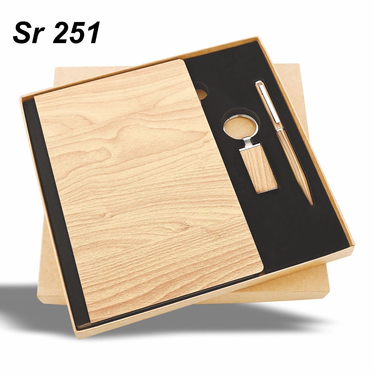 This 3 in 1 Gift set comes with Lightwood colour Diary, a Pen and a Keychain.