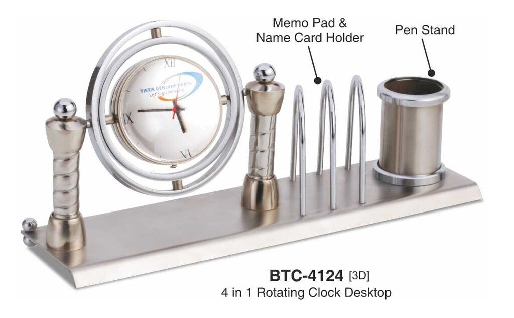 Metal Desk Organizer With Rotating Clock BTC – 4124