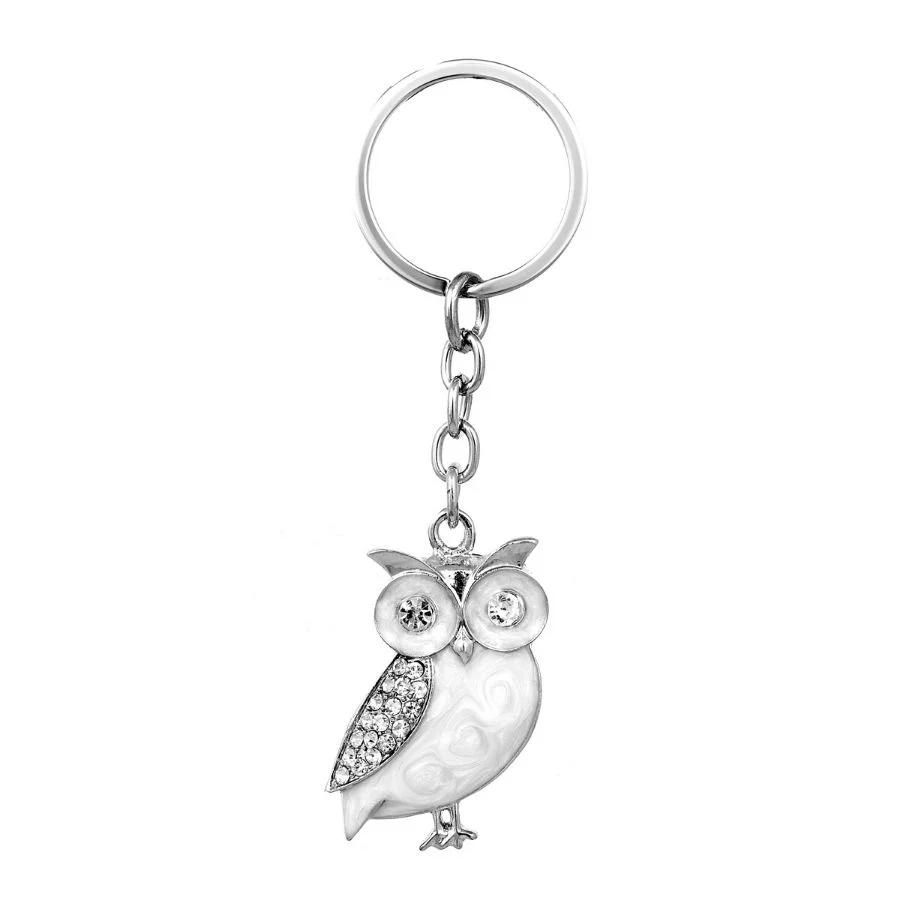 Owl Enameled Crystal Silver Keychain