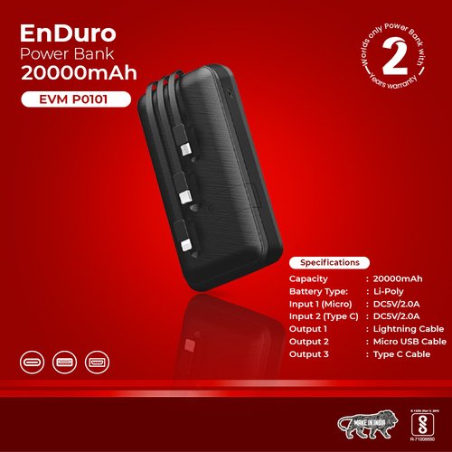 Power banks are something that we use daily. Imagine your phone not having enough battery while you are on the move. You wouldn’t want that to happen to you and your phone. Hence, we bring to you a very sleek and compact EVM Encase power bank which not only is powerful in battery capacity but also very durable and easy to carry around. With Enduro 20000 MAH by your side, you no more have to worry about your phone losing its battery quickly. Enduro 20000 MAH Power bank will ensure that your phone stays charged and your work does not get interrupted.