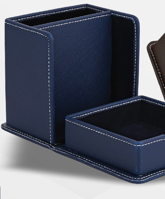Pen Stand with Pu Leather Finish OG 4 Blue