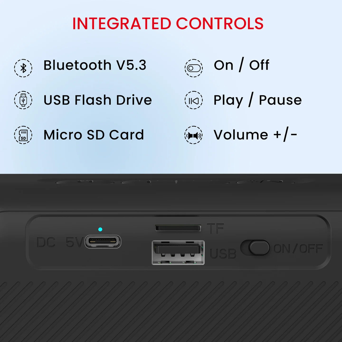 Multiple Connectivity Options: This Portable Bluetooth Speaker is equipped with the latest Bluetooth 5.3v, USB Port, and SD Card Slot to connect audio from various devices.