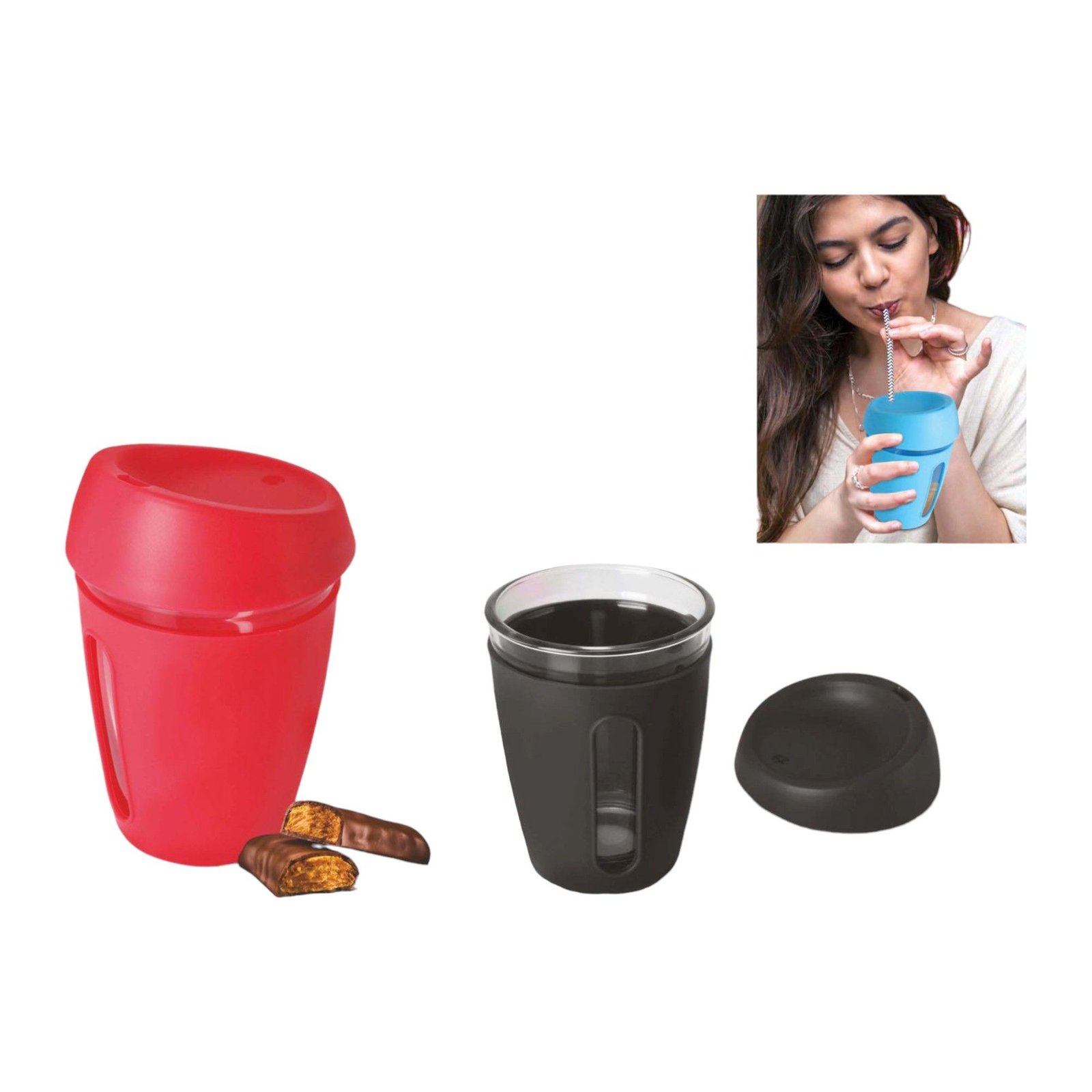 Premia II: Glass mug with Full Silicon Sleeve & lid | Capacity: 350 ml H256
