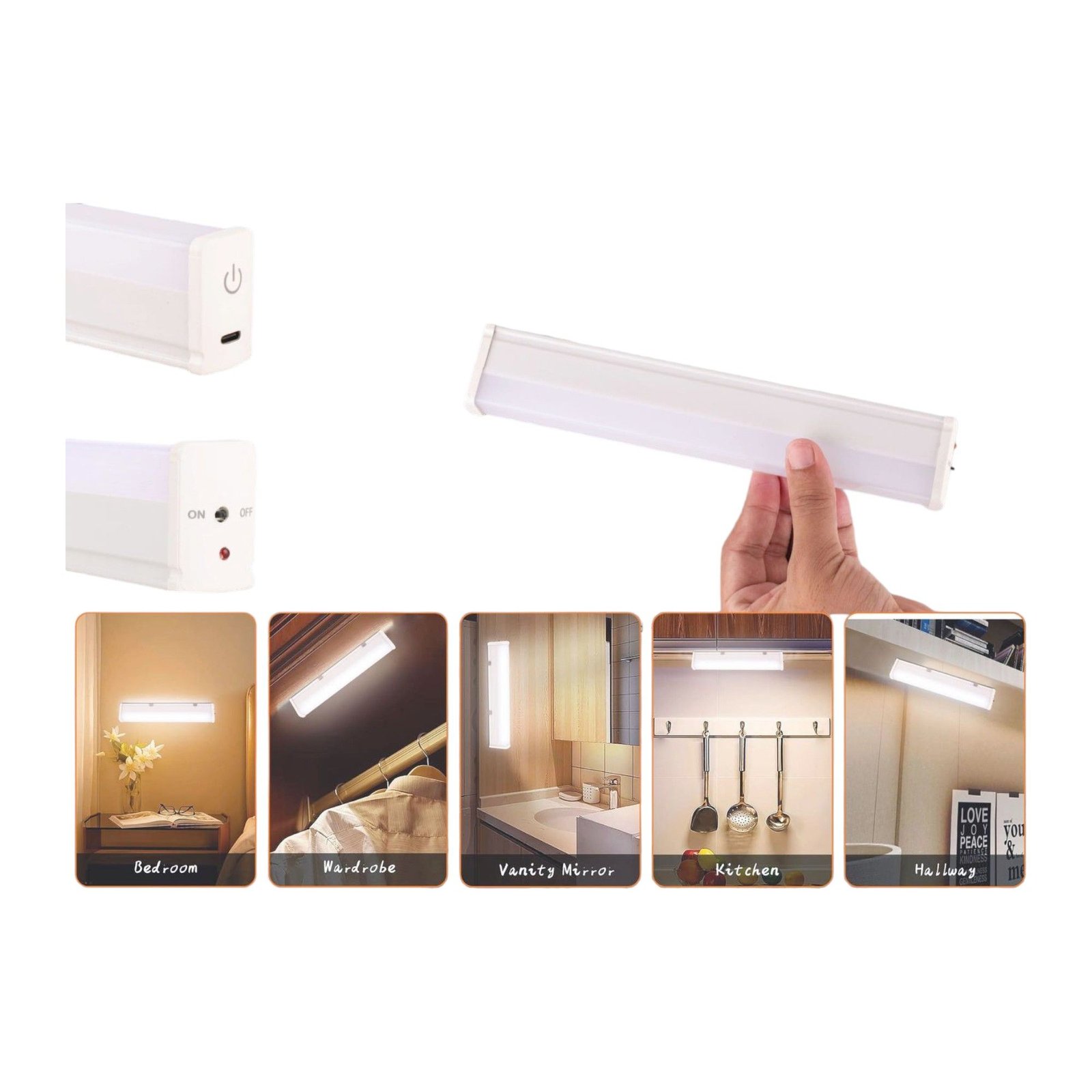 Rechargeable wardrobe light With Type C port | Touch sensor button | 3 step brightness | Metal clamp & screws included E333