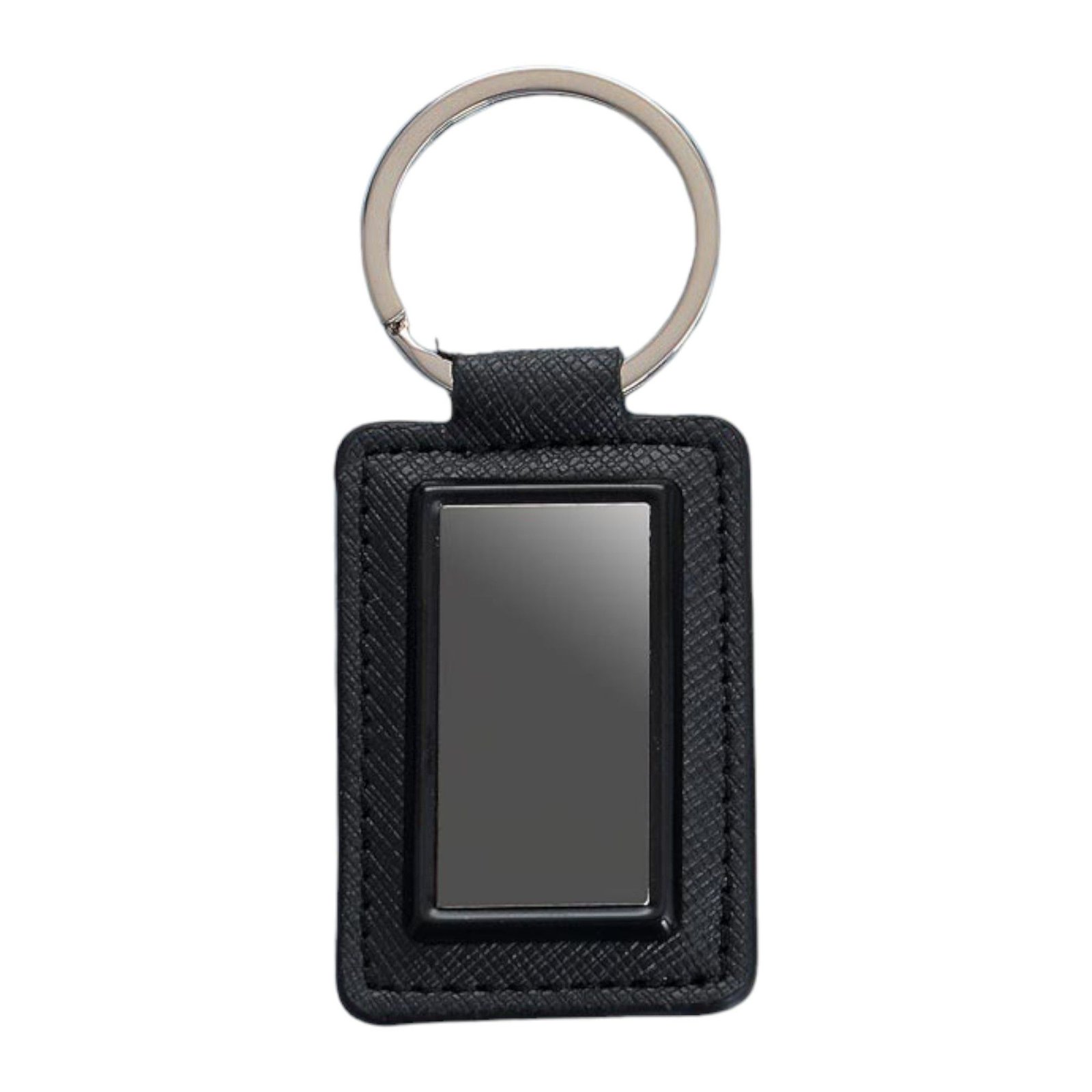 Rectangle metal keychain with PU base (gunmetal finish) J70