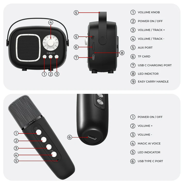 Seamless connectivity :- Connect your devices effortlessly and play your favorite karaoke tracks, giving you the freedom to sing along and party wherever you are.