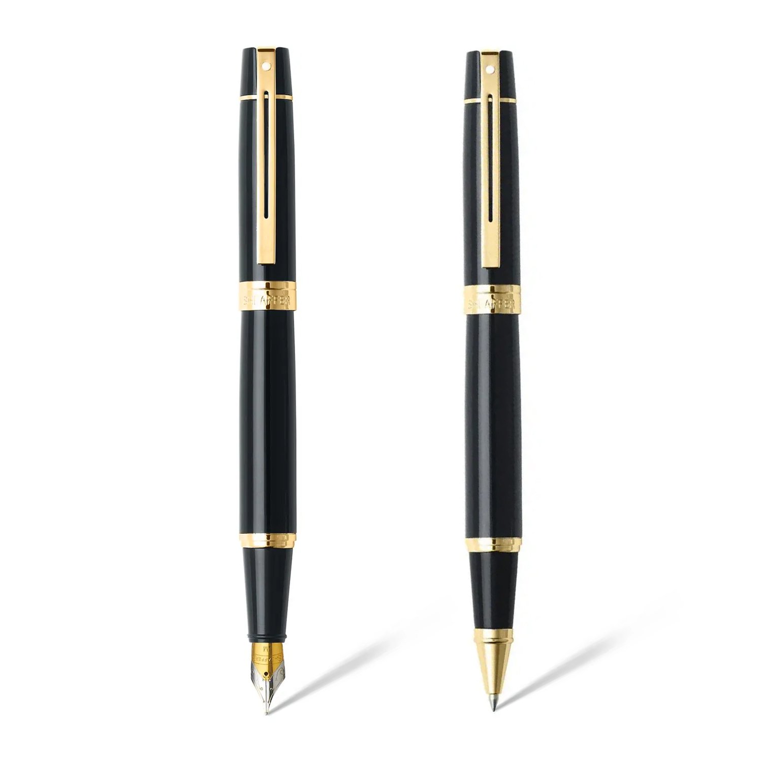Sheaffer Gift Set 300 E9325 Glossy Black With Gold Tone Trim Fp Medium And Rb