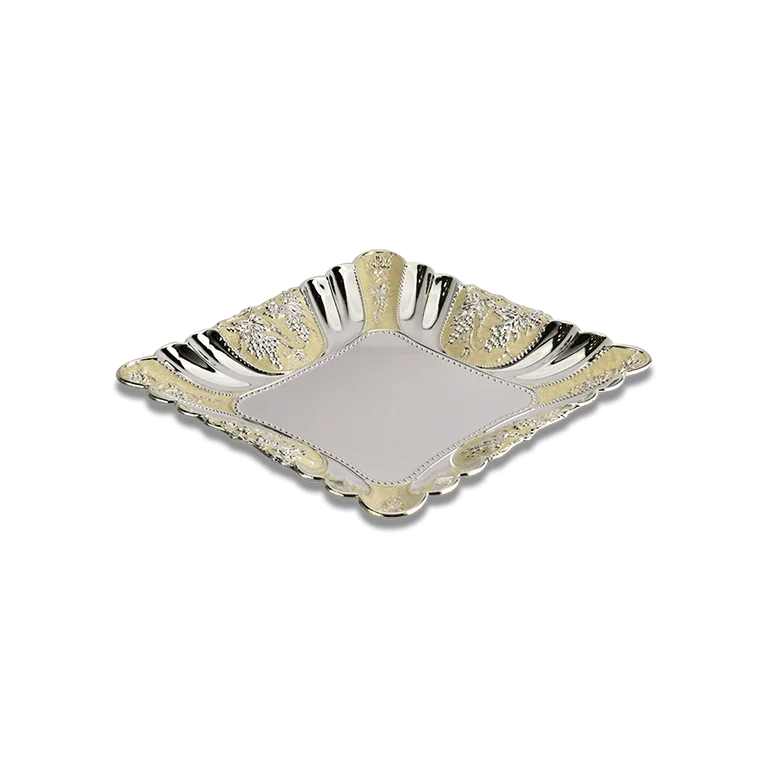 Square Enameled Silver Plate, Size- Small