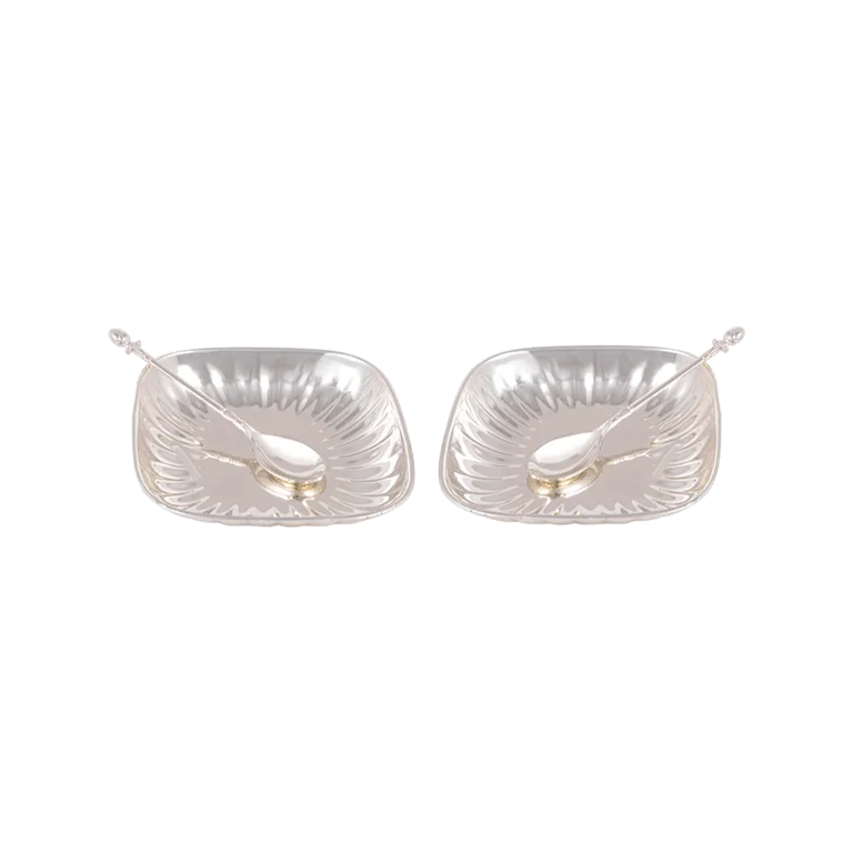 Displaying fluted design on their façade, these serving bowls have a finish that catches the whimsy of anyone that is presented with them. These look extremely classy when served. The cutesy spoons that accompany these bowls add prettiness to them. It will be an absolute delight to gift. The silver bowls set will look great on the table as a centerpiece. It is like an invigorating breath of fresh air because of its unique design which makes it stand apart from the rest of mundane bowls.