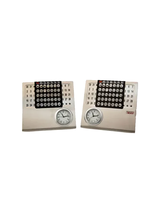 A never ending calendar with a clock! Made from Stainless Steel, you can gift it to your client or near and dear ones to stay ahead of time and each day. The clock on the sides and a definite space for branding acts as a multi tasker gift option. The calendar is available in two sizes, small and big.