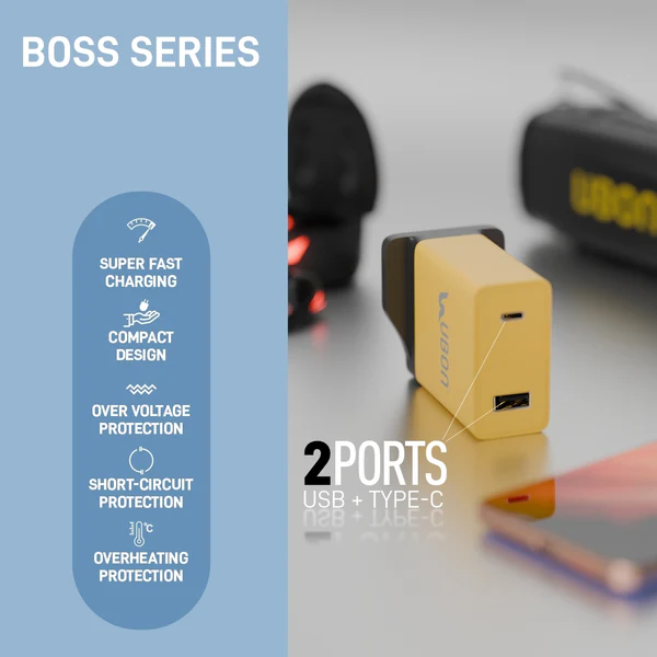 Introducing the UBON CH-945 Boss Series Dual Port Fast Wall Charger, the ultimate power solution for all your devices.