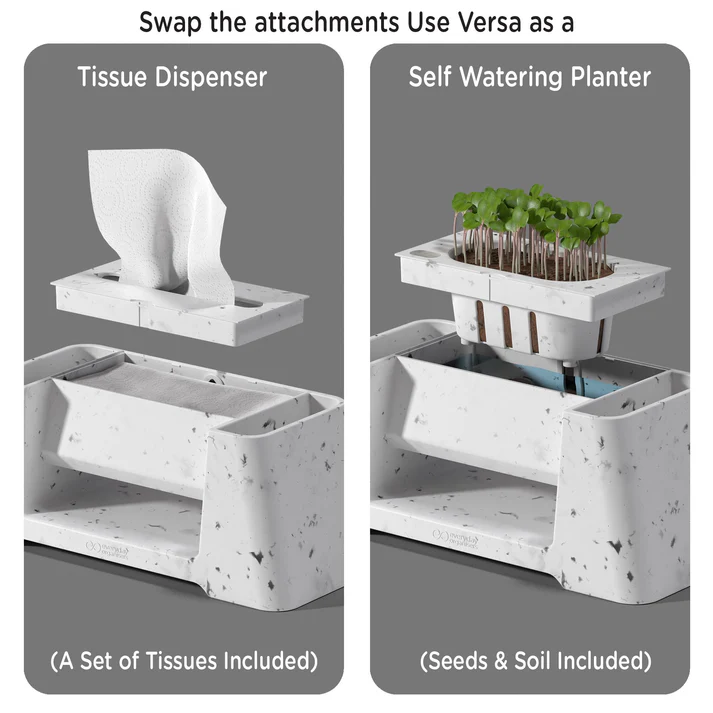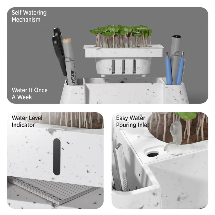 This multifunctional marvel boasts a built-in pen stand, a desk organizer with multiple compartments, a self-watering plant pot for a touch of greenery, & a convenient tissue box.
