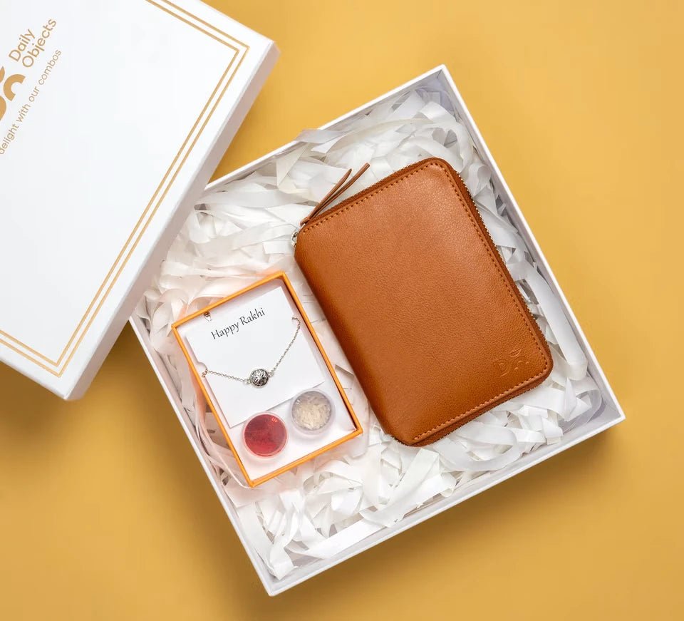 Package contents: 1 x Check-in Passport Wallet, 1 x GIVA Silver Sphere Floral Rakhi.