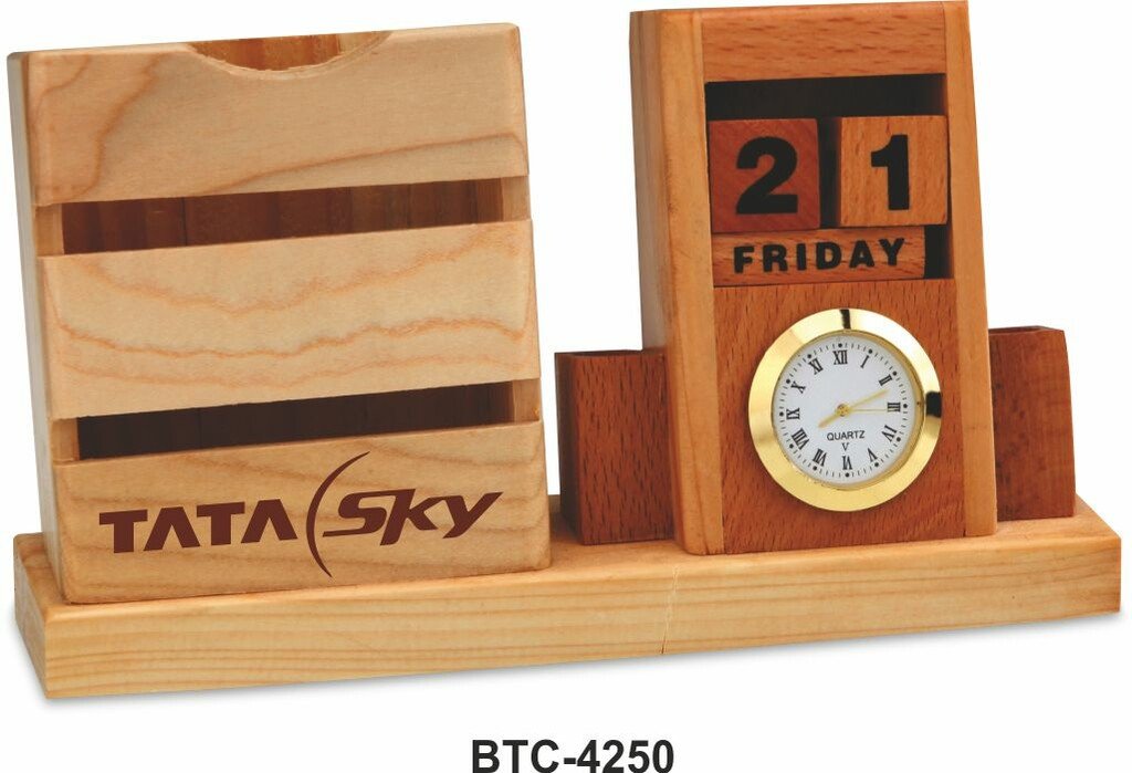 Wooden Perpetual Calendar With Clock BTC – 4250