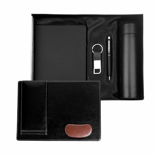 Small gifts can make a big difference. So, we are adding amazing gift sets to our broad Gifting Collection that can be the perfect corporate gift for all your employees, clients, and prospects. This Standard 5-in-1 Black Gift set contains a Temperature bottle, Mousepad, pen, keychain, and diary, ideal for Corporate gifting.